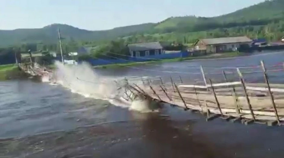 Na društevnim mrežama se pojavio snimak iz istočne Rusije na kom se vidi kako se poplavljeni viseći most ruši u trenutku dok preko njega prelazi kamion.