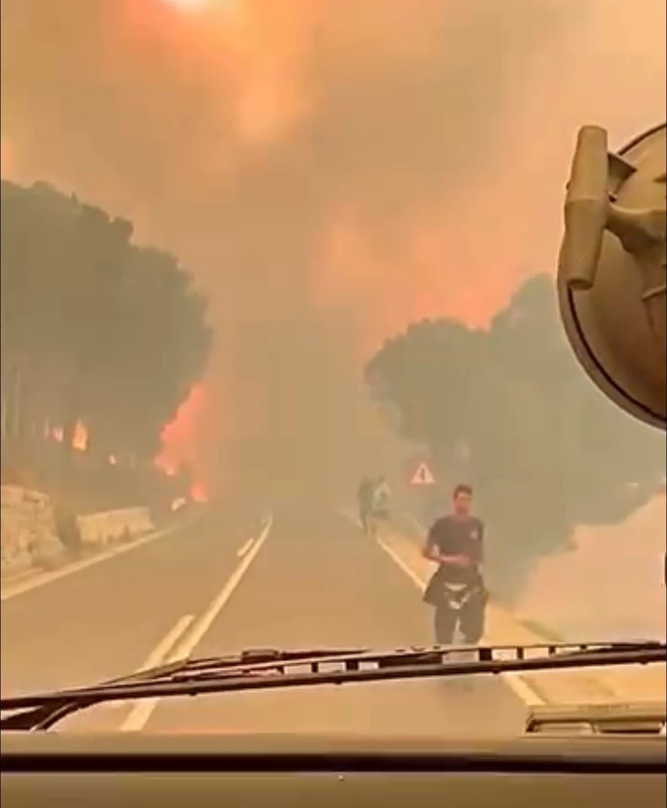 To je prizor koji jasno prikazuje u kakvoj se opasnosti vatrogasci trenutno nalaze, a borba sa vatrenom stihijom trebalo bi da potraje najmanje do večeri, a moguće i tokom noći.