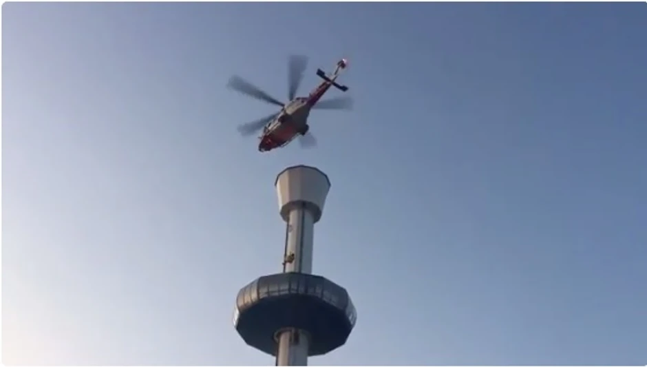 Na video-snimcima vide se zaglavljeni posjetioci koje spasioci izvlače sajlama iz helikoptera iznad kule visoke 53 metra.