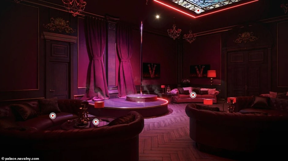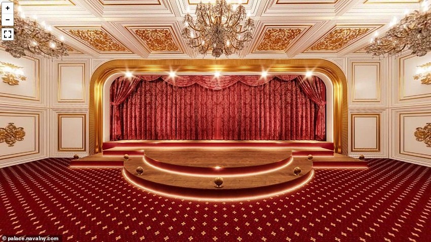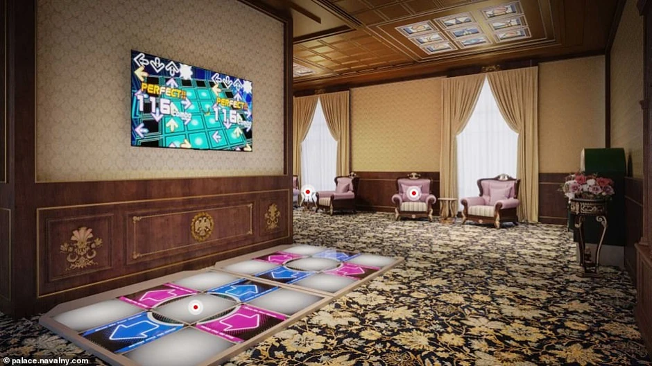 Na osnovu dobijenog plana napravljene su 3D fotografije koje pokazuju kako bi unutrašnjost palate mogla da izgleda. Tu su kockarnica sa slot mašinama i muzičko-plesnim tepihom (dance mat), spa-centar i pozorište, podzemno klizalište, bazen, akvadsikoteka, tunel koji vodi do obale, kao i vinogradi i farme ostriga, te zasebna „dača“.