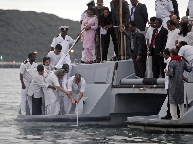 Pepeo koji je danas prosut, decenijama je u tajnosti držala jedna porodična prijateljica. Prema hindu običajima, mrtvi se spaljulju, a 13 dana kasnije pepeo se prosipa u reke ili more.