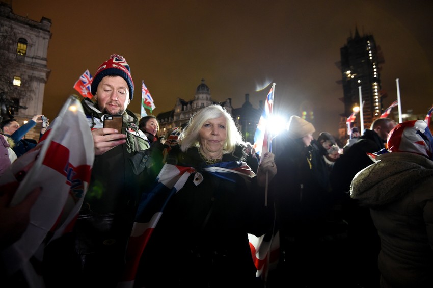 Stotine ljudi okupile su se na trgu gde su slavile. Neki su skandirali "Zbogom, EU zbogom" i "Izlazimo!" i pevali britansku himnu.