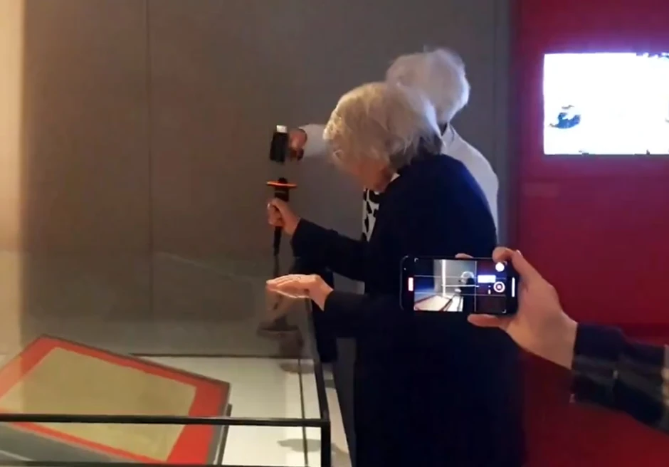 Naime, kako se vidi na snimcima koji se dele društvenim mrežama, Časna dr Sju Parfit (82) i Džudi Brus (85), penzionisana nastavnica biologije, ušli su u biblioteku i pokušali da razbiju staklenu vitrinu koja štiti istorijski dokument koristeći čekić i dleto.