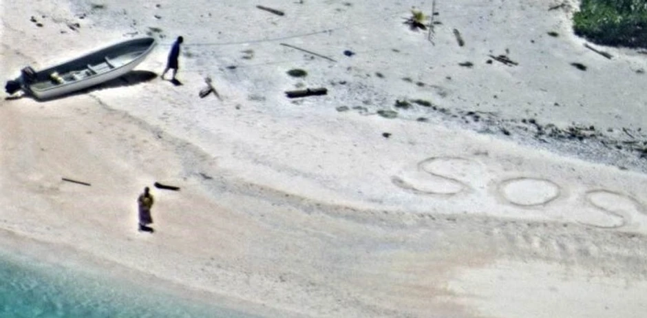 Obalska straža SAD spasila je dva mornara nakon što je primećen poziv za pomoć u vidu džinovskog "SOS" ispisanog na plaži jednog nenaseljenog ostrva u Mikroneziji, prenosi AP pozivajući se na havajske medije.