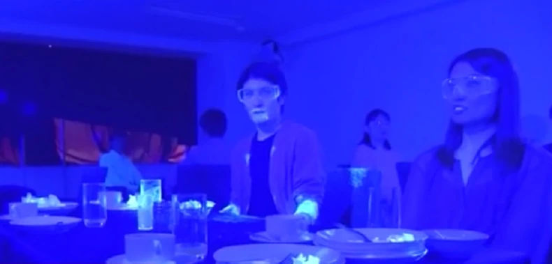 Na snimku se vidi 10 osoba koje ulaze u restoran, a jedna od njih je “zaražena” korona virusom. Svaki učesnik obilazi oko bifea kao u normalnim uslovima, ne razmišljajući o mogućim infekcijama. Na kraju videa učesnici su stavljeni pod crno svetlo (ultraljubičasto) koje pokazuje gde se “infekcija” proširila.