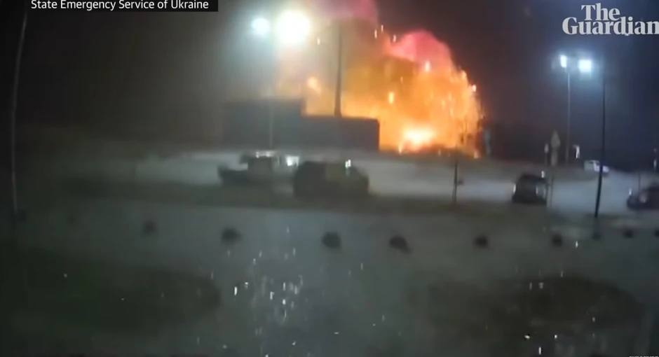 Sigurnosne kamere snimile su trenutak kada projektil udara u tržni centar Retrovil u severozapadnom Podilskom okrugu.