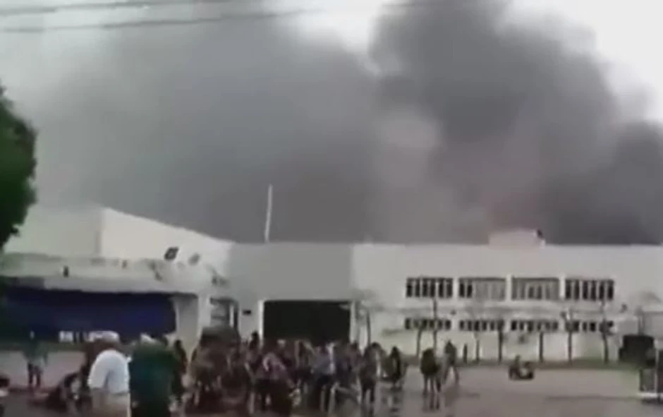 Na licu mjesta vidi se gust dim iznad rezervoara koji se koristi za skladištenje hemikalija i goriva.