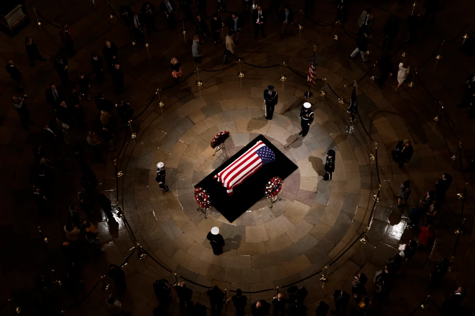 Nakon izvođenja zvanične predsedničke himne “Hail to Chief” i počasne paljbe, kovčeg sa telom 41. predsednika Sjedinjenih Američkih Država Džordža Buša starijeg unet je u Kapitol i stavljen ispod mermerne kupole.