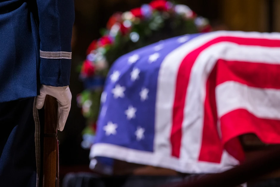 Sin pokojnog lidera i 43. predsednik SAD Džordž Buš mlađi stajao je sa rukom na srcu i sa suzama u očima posmatrao unošenje kovčega, obmotanog američkom zastavom, a potom je porodica Buš ušla u Kapitol.
