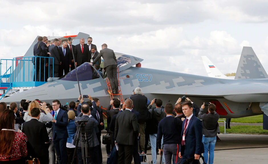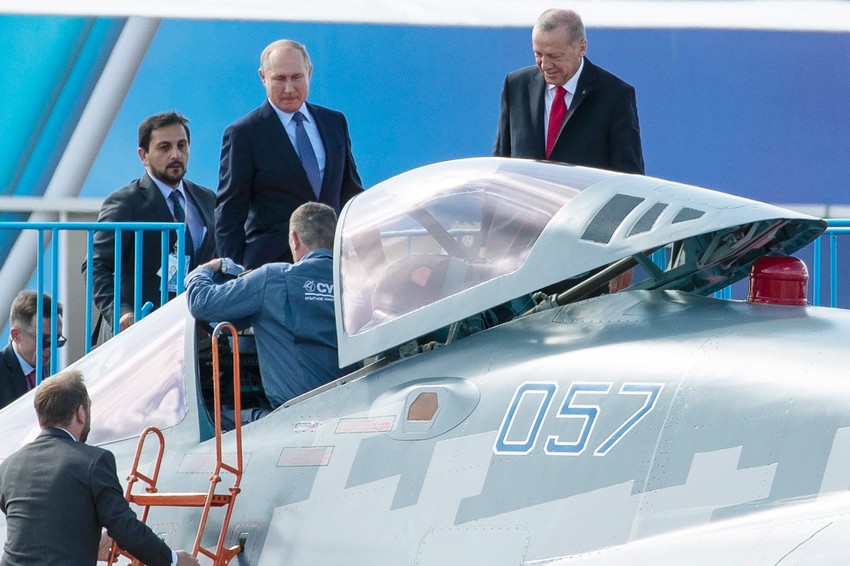 Putin je svom kolegi pokazao avione Su-35 i Su-57, a Erdoganu je najviše pažnje privukao Suhoj Su-57, avion pete generacije osmišljen kao ruski odgovor na F-35. Kamera je zabeležila deo razgovora dvojice predsednika. Erdogan je pitao Putina da li je spreman za letenje i da li je na prodaju, a Putin je potvrdno odgovorio na oba.