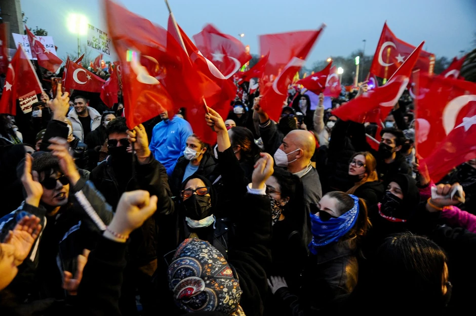 Ljudi su se juče okupili u blizini gradske skupštine u Istanbulu, petu noć zaredom. Mahali su turskim zastavama i uzvikivali pred brojnim interventnim policajcima. Imamogluova supruga Dilek Kaja Imamoglu obratila se ljudima ispred gradske većnice, naglasivši da je njenom suprugu nanesena nepravda.