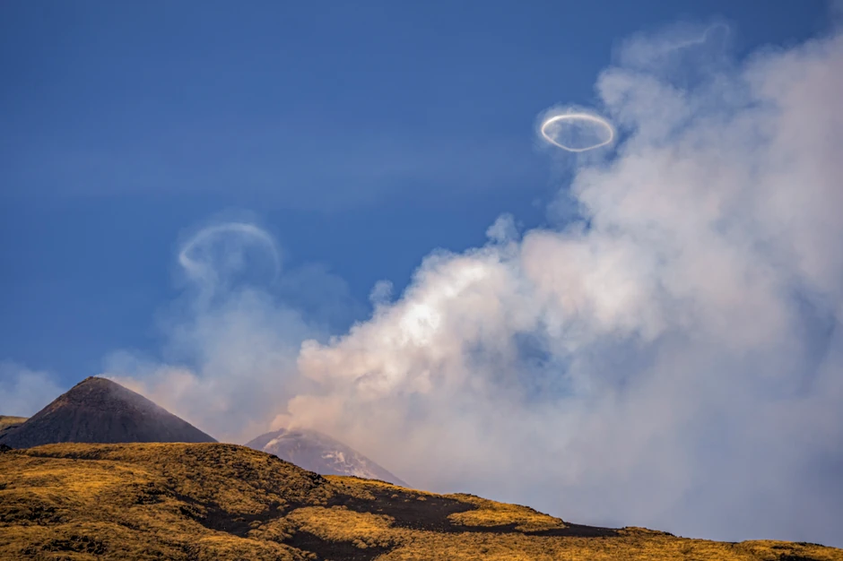 Vulkan Etna priredio je predstavu stvarajući gotovo savršene krugove na sicilijanskom nebu.