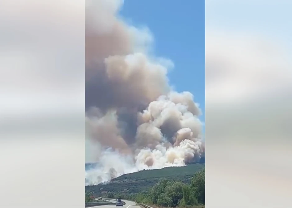 Veliki požar izbio je danas u bugarskog opštini Strumjani, pored magistrale Struma, a plamen se kreće prema Severnoj Makedoniji.