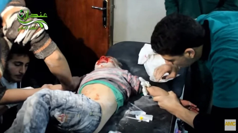 Snimak su objavili sirijski aktivisti za ljudska prava koji su napomenuli da su ranjavanju civila doprineli i ruski vazdušni udari.