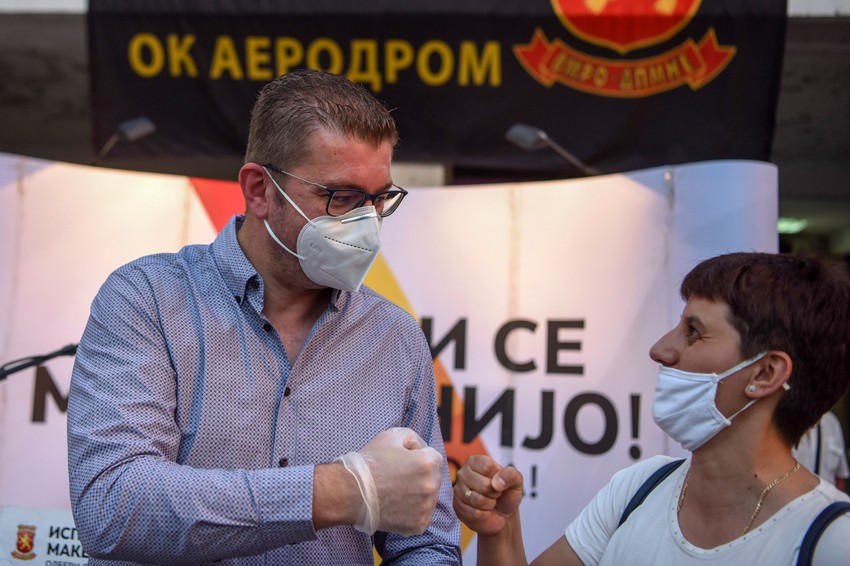 Na drugoj strani je desna stranka VMRO-DPMNE predvođena Hristijanom Mickoskim koja tvrdi da je promena imena zemlje bila previsoka cena za uspehe socijaldemokrata. Ignorišući novo ime Severna Makedonija i upotrebljavajući stari naziv Makedonija, Mickoski se tokom predizborne kampanje obraćao onim Makedoncima koji sporazum sa Grčkom smatraju nepravednim i koji bi ga najradije povukli u ime spašavanja nacionalnog identiteta.