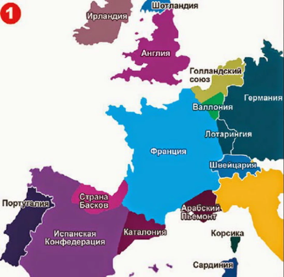 Ni Francuska nije prošla mnogo bolje: Deo teritorije uzeli su Baski, a mnogobrojni imigranti prebačeni su u "Arapski Pijemont" sa Marsejom kao glavnim gradom, a odvojili bi se i Korzika (postaje nezavisna) i Alzas I Loren (pripali Nemačkoj).