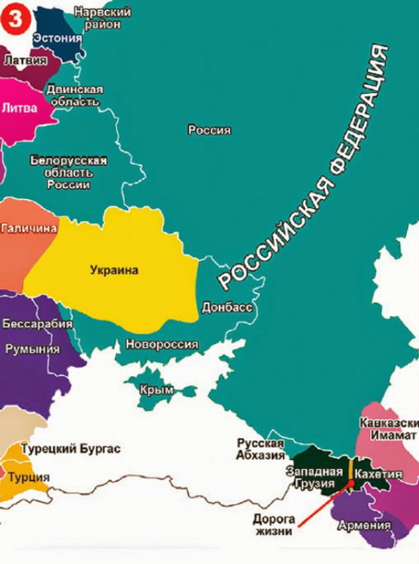 Bivše sovjetske republike po ovoj mapi poslužile su Rusiji kao poligon za uzimanje teritorije. Estonija je ostala bez oblasti Narva, Letonija bez Dvinska, a Ukrajina se deli na dva dela - Galiciju (koja čak uspeva da uzme delić Poljske!) i Ukrajinu.