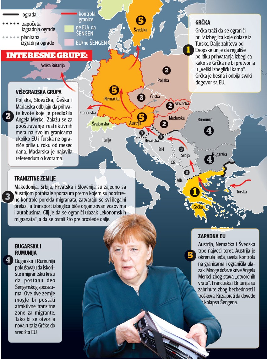 Evropa je posle svega podeljena na interesne grupe od kojih se izbegličkoj politici kancelarke i prihvatanju izbegličkih kvota najoštrije protivi Višegradska četvorka - Poljska, Slovačka, Češka i Mađarska.