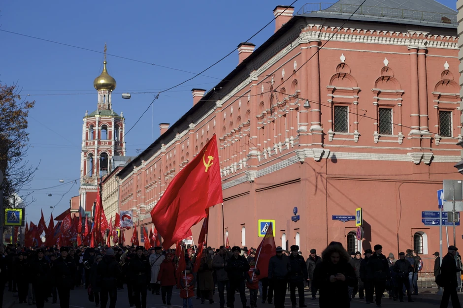 Pristalicama KPRF pridružile su se i druge levičarske partije i pokreti, uključujući Savez sovjetskih oficira, Ruski pokret žena Nada Rusije, Lenjinski komunistički savez omladine, a u šetnji do centra Moskve gde je održan miting, nošene su partijske zastave, transparenti i drugi simboli sovjetske vlasti.