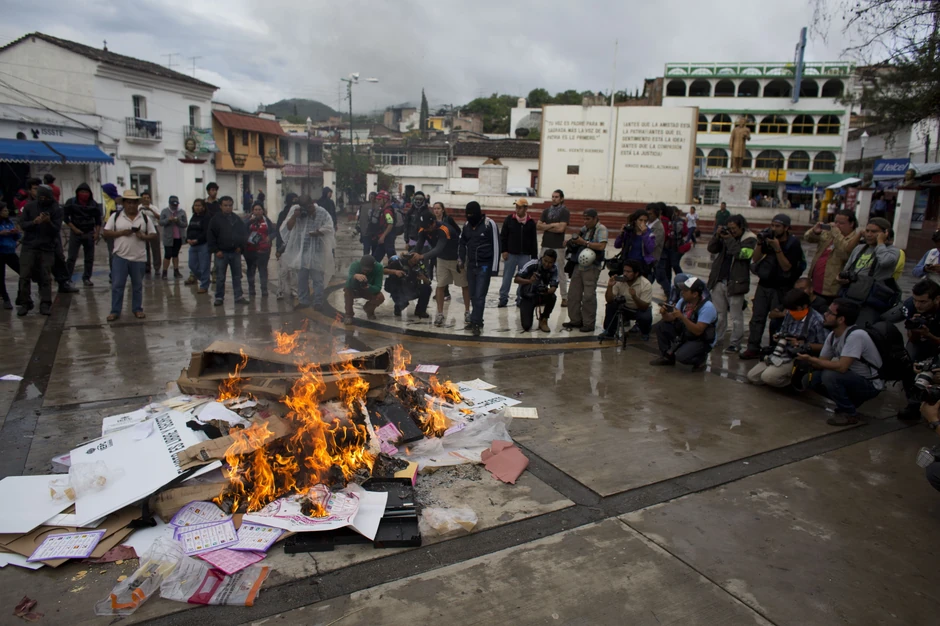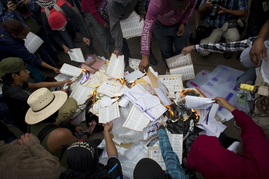 U nekim mestima u državi Gerero okupili su se aktivisti, među kojima su i roditelji nestalih studenata, koji su palili listiće iz protesta.