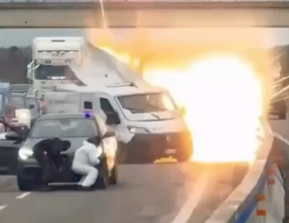 Članovi bande koristili su automobile sa plavim rotacionim svetlima, pretvarajući se da su policijska pratnja u civilu kako bi zavarali obezbeđenje i lakše im se približili. Iz automobila su izašli maskirani muškarci u belim i crnim kombinezonima, naoružani automatskim puškama, koji su odmah otvorili vatru na oklopna vozila. Odjeknula je i snažna eksplozija kojom su napadači pokušali da probiju oklop jednog od kamiona, što je izazvalo gust oblak dima koji je prekrio put.