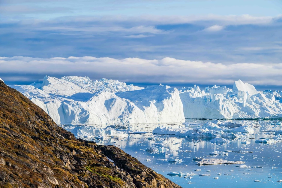 Grenlandski ledeni pokrivač, koji je na nekim mestima deblji od tri kilometra, već se rapidno topi usled rastućih globalnih temperatura. Ako se potpuno otopi – za šta naučnici procenjuju da bi trajalo vekovima – globalni nivo mora porašće za 7,2 metra, potapajući obalske gradove širom sveta.