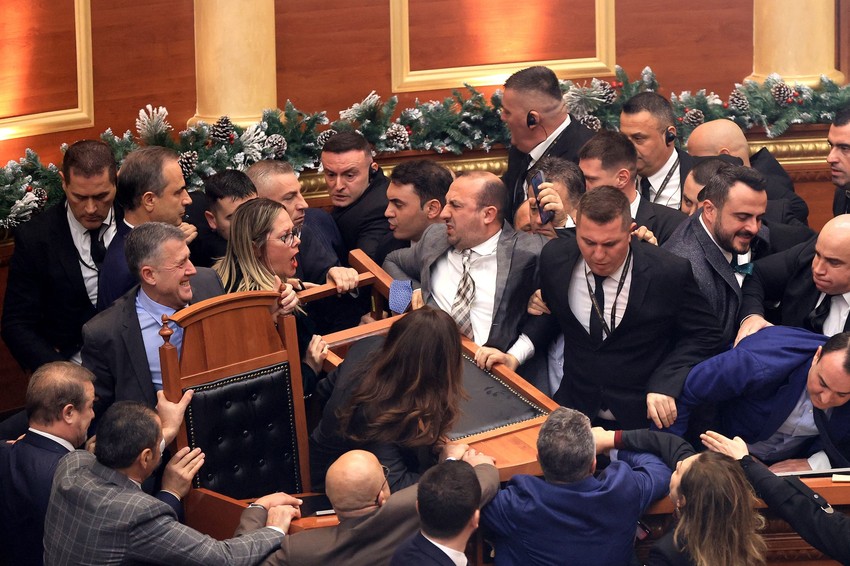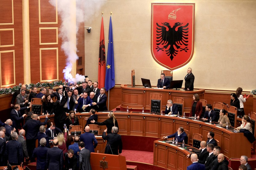 Poslanici albanske opozicije sukobili su se danas sa policijom u parlamentu, nakon višenedeljnih tenzija zbog optužbi za korupciju protiv zamenice premijera Edija Rame, Belinde Baluku i drugih zvaničnika.