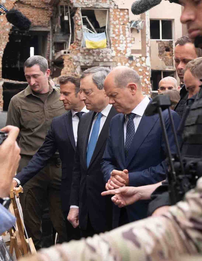 Ukrajinski funkcioner objašnjavao je francuskom predsedniku Emanuelu Makronu, nemačkom kancelaru Olafu Šolcu, italijanskom premijeru Mariju Dragi i rumunskom predsedniku Klausu Iohanisu šta se događalo u tom razrušenom gradu.