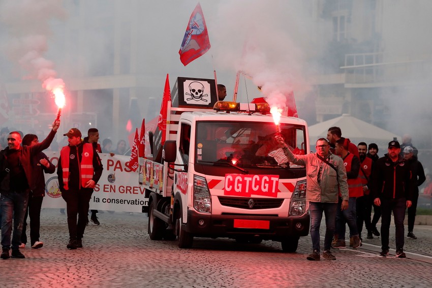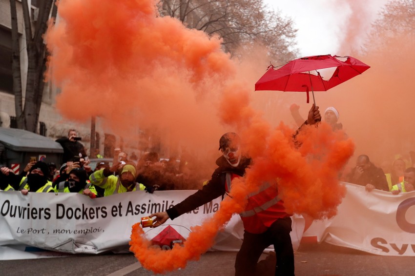 Širom Francuske hiljade građana u crvenim prslucima sindikata maršira kroz gradove od Marseja na mediteranskoj obali do Lila na severu.
