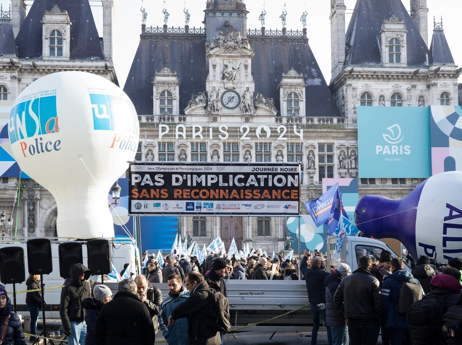 Policija u Francuskoj održala je danas jednodnevni štrajk pod nazivom "Crni četvrtak" zahtevajući povećanja plata i poboljšanje uslova rada tokom Olimpijskih igara koje će ove godine biti održane u Parizu.