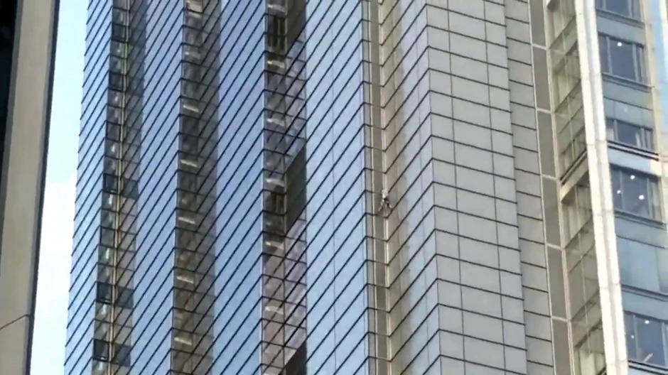 Posmatrači ovog neobičnog poduhvata su svojim pametnim telefonima fotografisali "spajdermena".