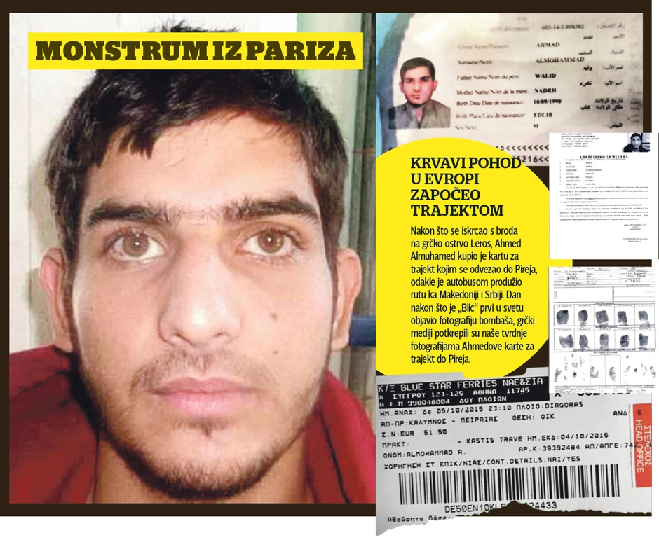 - Bombaš samoubica Ahmed Almuhamed je u Grčku ušao brodom iz Turske, zajedno sa još 198 izbeglica. Na ostrvu Leros je upisan u registar i identifikovan, a uzeti su mu i otisci prstiju. Dobio je dokument kojim mu se dozvoljava da u Grčkoj ostane najviše šest meseci. Ipak, on je već nekoliko dana kasnije bio na granici sa Makedonijom, iz koje je prešao u Srbiju preko Miratovca - rekao je Muzalas.