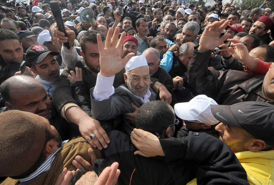 Ganuči i još oko 70 pripadnika pokreta "Enada" u egzilu, stigli su u Tunis iz Velike Britanije, dve sedmice pošto je u nasilnim protestima u svrgnut predsednik Zine al Abidin Ben Ali.