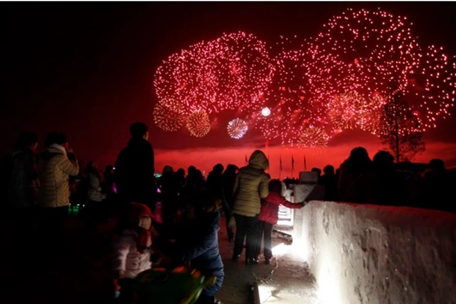 Replika dugodometne rakete Hvasong - 15 napravljena od leda bila je glavna atrakcija festivala ledenih skulptura, održanog u Pjongjangu.