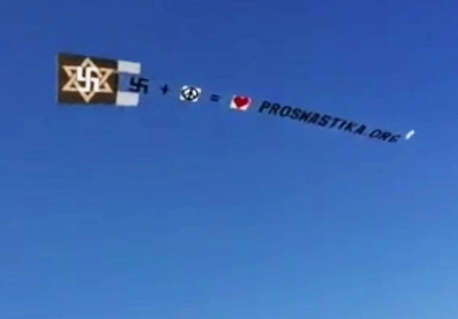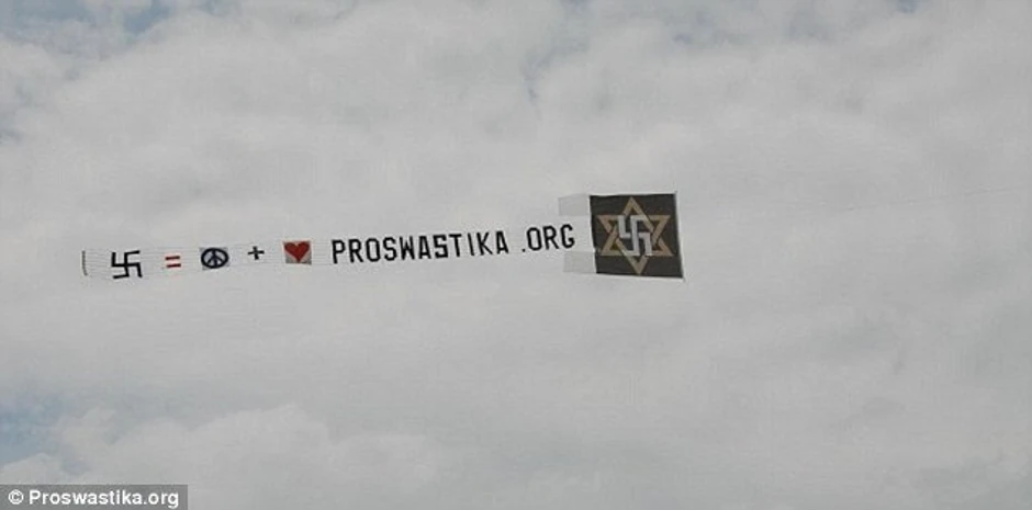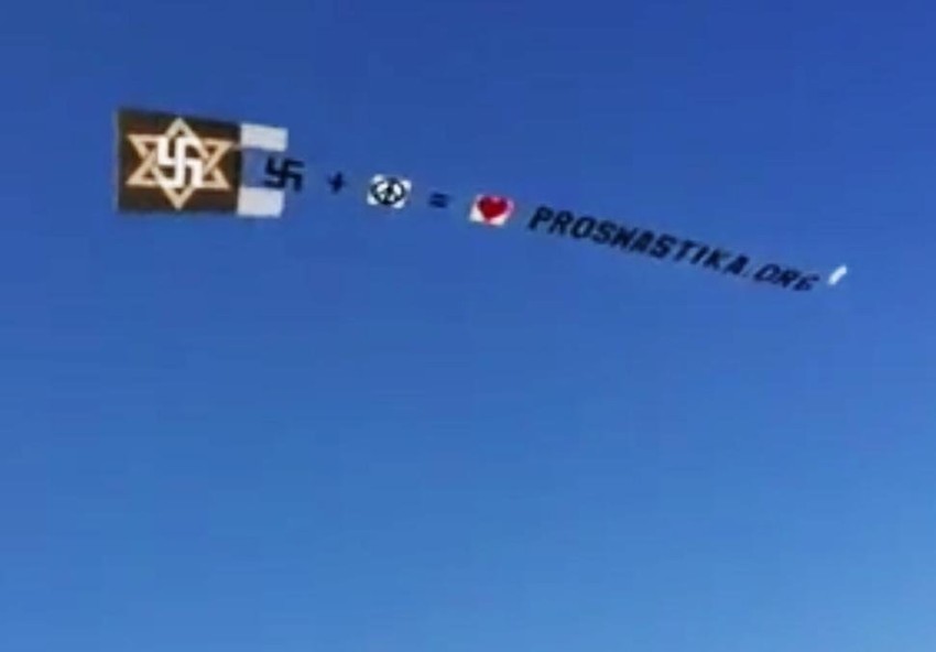Transparent, zakačen na avion koji je leteo iznad plaža u Njujorku i na Long Ajlendu, s ciljem da se promeni stav ljudi o svastiki odnosno kukastom krstu, izazvao je u subotu gnev u SAD.