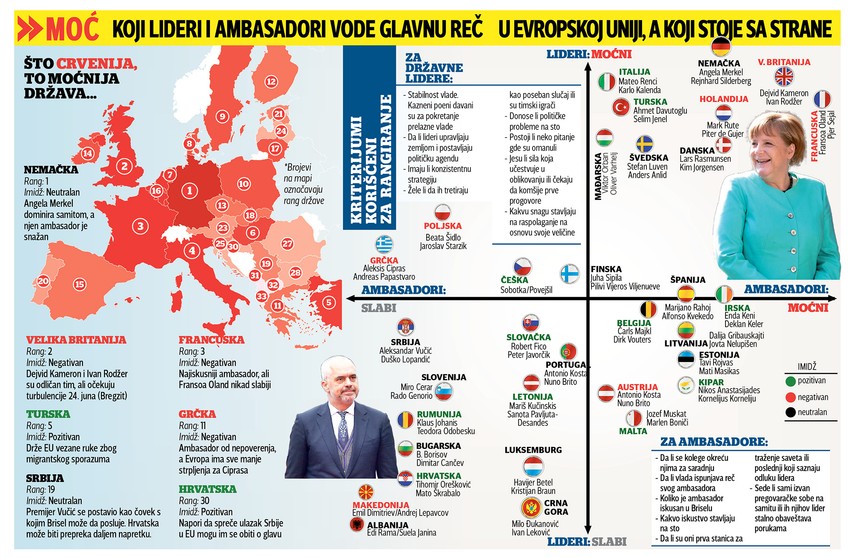 Tako je barem ocenio list „Politiko“ koji je rangirao zemlje članice EU i zemlje kandidate za priključivanje na osnovu uticaja državnih lidera i ambasadora u Briselu.