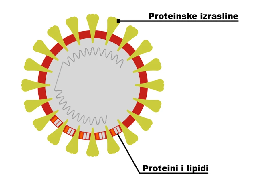 Virusi iz grupe korona su tako nazvani zbog izgleda. Naime, oni imaju šiljke koji podsećaju na krunu na površini. Virus je umotan u mehurić masnih molekula lipida koji se raspada prilikom kontakta sa sapunom.