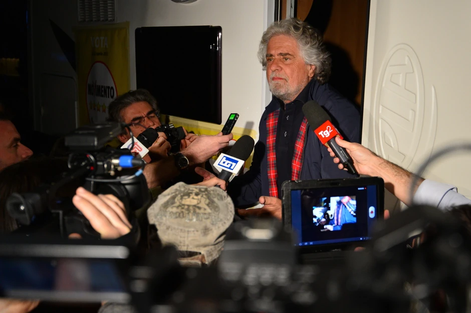 Lider "Poketa pet zvezda" Bepe Grilo, koji je na izborima u Italiji neočekivano osvojio 25 odsto glasova, pozvao je danas Italijane da mu se pridruže u protestu ispred parlamenta nakon što je predsednik Đorđo Napolitano dobio danas drugi mandat, što je Grilo ocenio "državnim udarom".