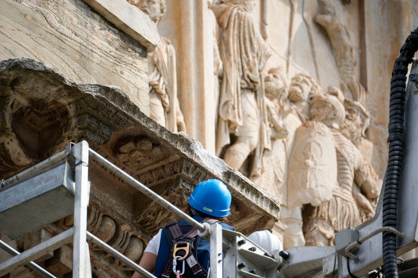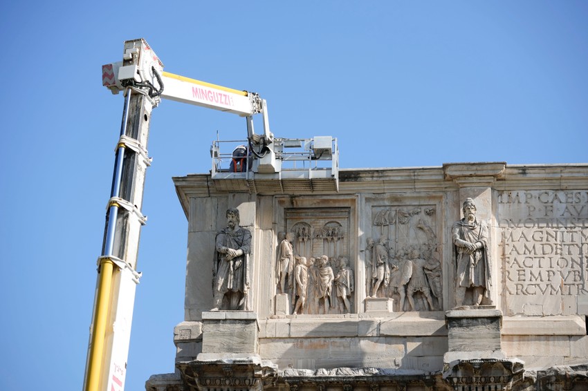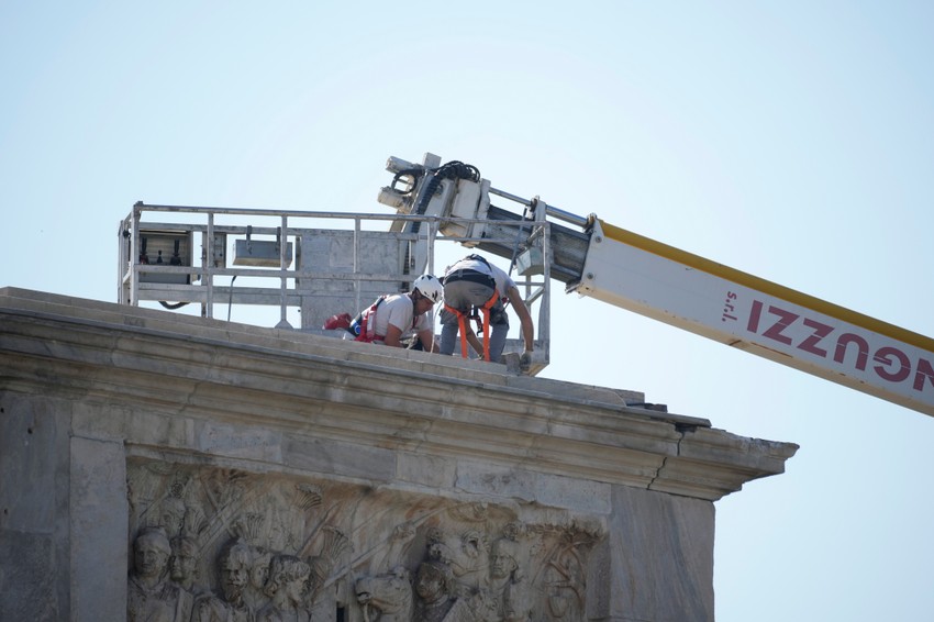 Grom, koji je pogodio antički Konstantinov slavoluk u blizini Koloseuma u Rimu tokom oluje u utorak, oštetio je delove te antičke građevine, saopštio je danas Arheološki park Koloseum.