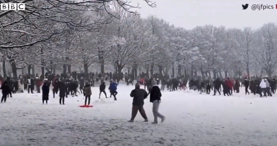 Policija Zapadnog Jorkšira je kaznila 20-godišnjeg i 23-godišnjeg mladića zbog toga što su 14. januara organizovali masovno grudvanje u parku. Za organizaciju događaja korišćene su društvene mreže, a na njima su objavljeni i snimci događaja.