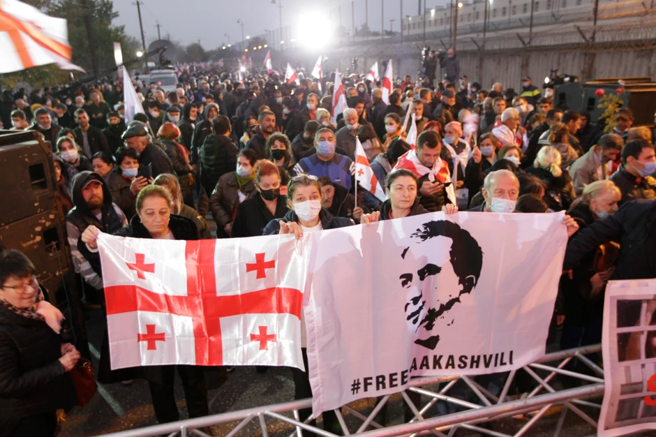 Nekoliko stotina demonstranata okupilo se na mitingu ispred zatvora u gradu Rustavi danas, a na tom području dežurale su pojačane policijske patrole, dok je ulaz u objekat bio blokiran čeličnim barijerama. Lekari kažu da je bivši predsednik veoma slab jer skoro 40 dana štrajkuje glađu.