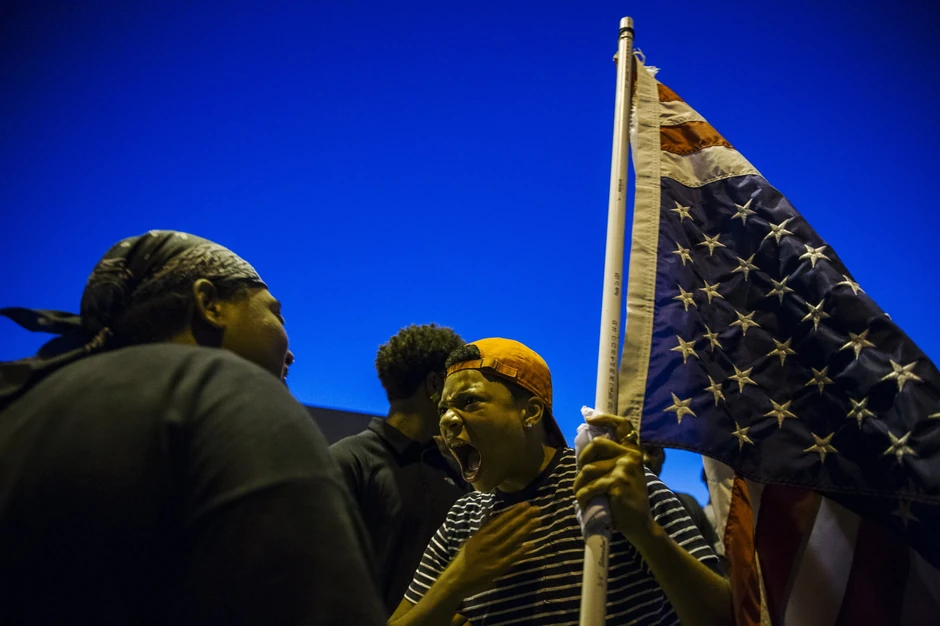 Policija je naložila demonstrantima da se uklone sa avenije Zapadni Florisant i oslobode saobraćajnu žilu-kucavicu, dok su neki od okupljenih bacali flaše sa vodom i drugo smeće na policajce.