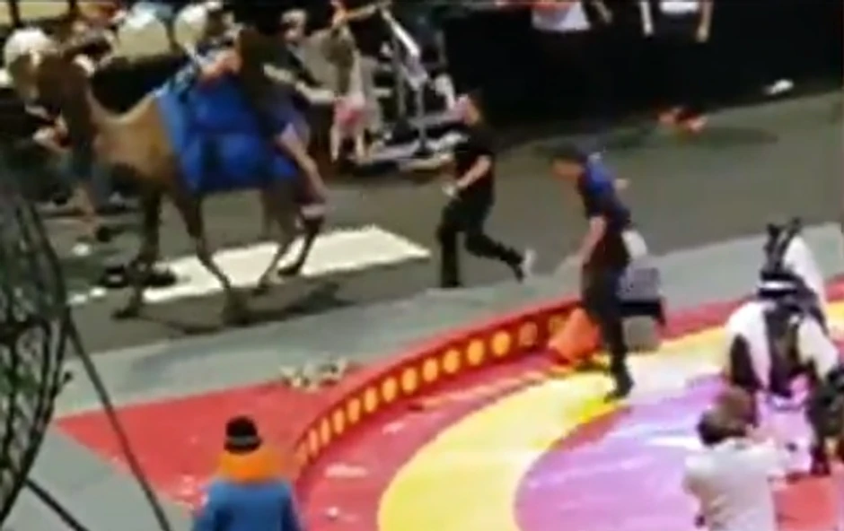 Uplašena kamila povredila je šestoro dece i jednu osobu kada je na njene noge jedno dete očigledno bacilo lopatu, dok su uplašeni posetioci cirkusa napustili arenu u Picburgu.