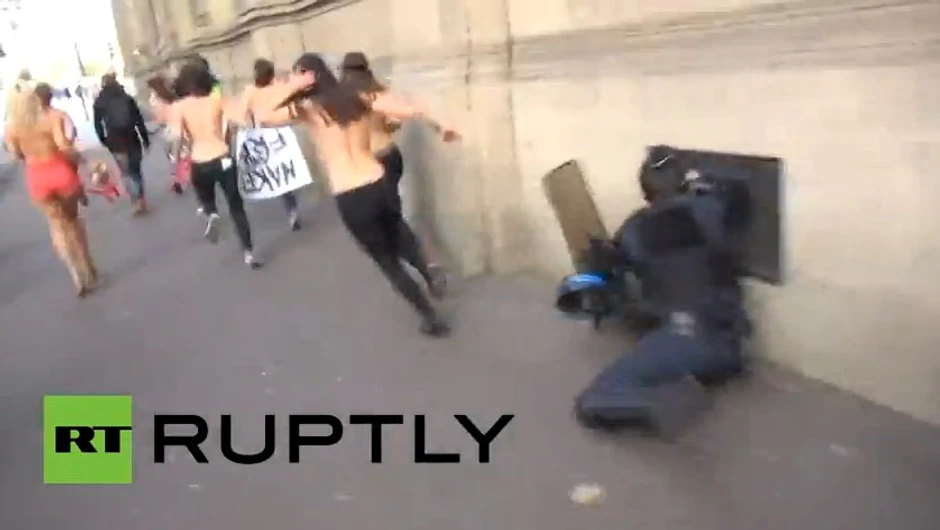 Na video snimcima emitovanim na brojnim medijima prikazane su aktivistkinje "Femena" u toplesu kako vešto izbegavaju pokušaje policajaca da ih privedu.