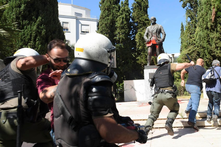 U Atini je došlo do sukoba policije i demonstranata, koji su ispred američke Aambasade zapalili zastavu SAD i uzvikivali "Pompeo, idi kući!"