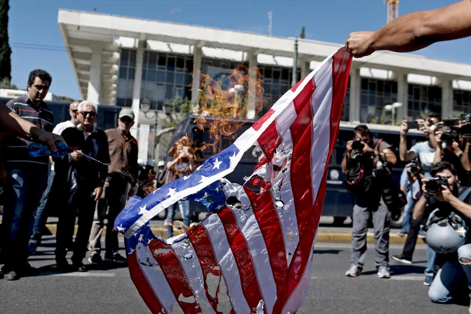 Demonstranti su na atinskom Trgu Sintagma uzvikivali "Amerikanci, ubice naroda", puštajući glasnu muziku preko razglasa, uključujući pesme u čast čuvenog revolucionara Če Gevare.