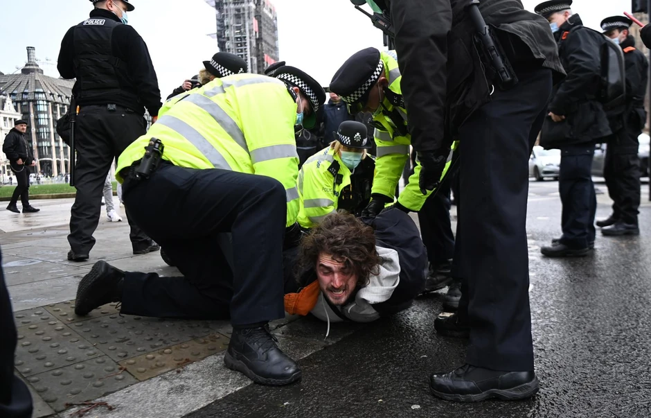 Nakon što su odbili da napuste Vestminster, policija je ljude prikovala za zemlju i stavila im lisice pre nego što su ih strpali u kombije.