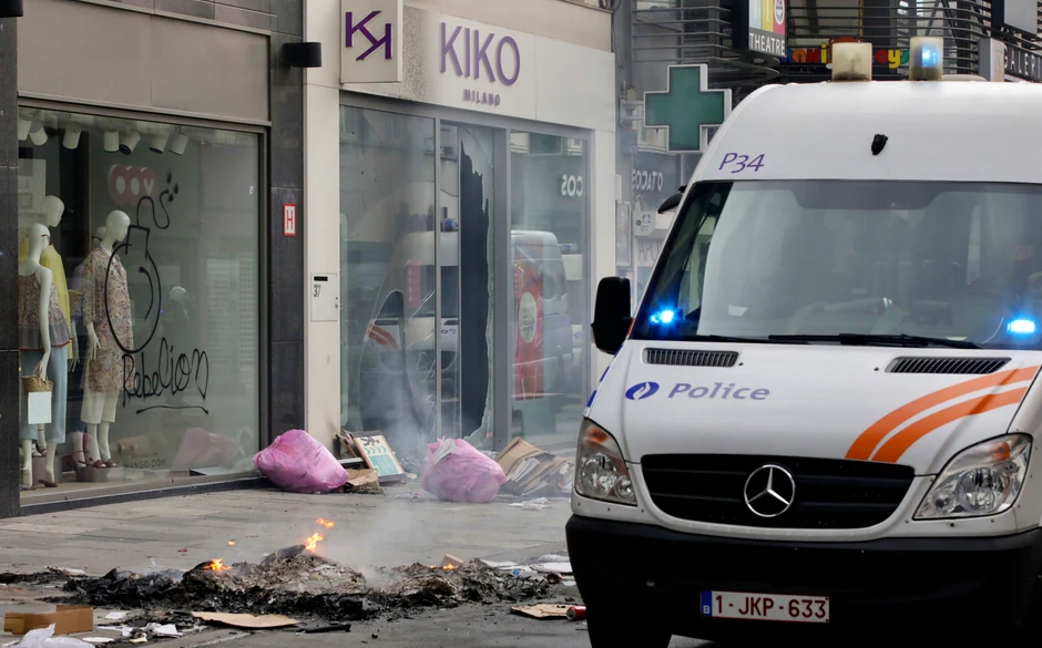 Protesti u Briselu su u početku bili mirni, a većnina demonstranata je nosila zaštitne maske protvi COVID-19.