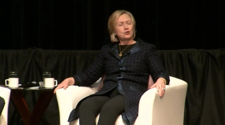 Upoređujući američke i ruske predsedničke izbore, Klintonova, koju mnogi doživljavaju kao glavnog demokratskog kandidata za predsedničke izbore 2016, podsmešljivo je odglumila zamišljeni Putinov dijalog sa samim sobom pre nego što je ponovo postao predsednik.