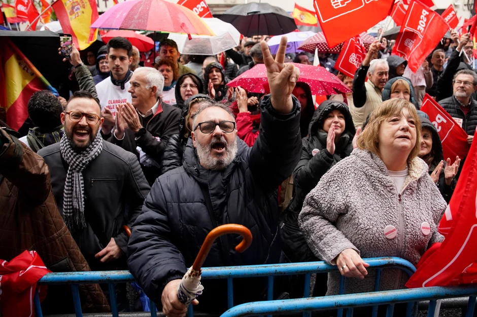 Birači Sančezove Socijalističke radničke partije (PSOE) nosili su transparente sa natpisima ''Pedro, ne daj se'' i ''Demokratija da, fašizam ne'', kao i socijalističke i LGBT zastave, prenosi Efe.